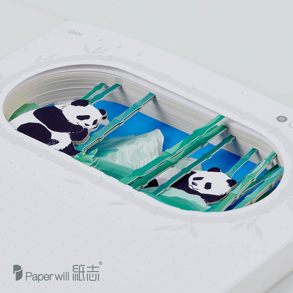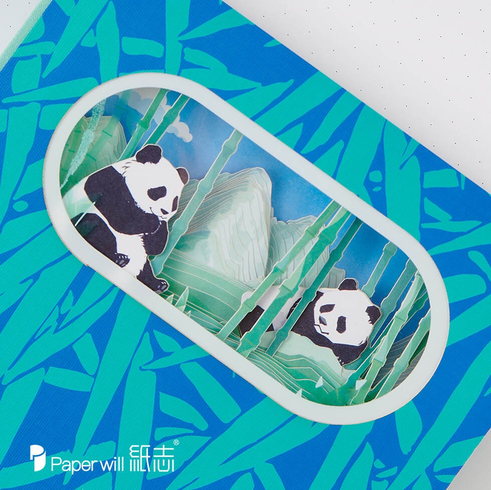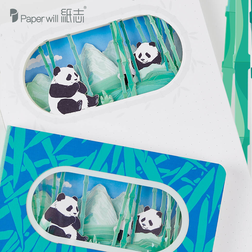 As you open the notebook, you'll find each page is a delightful surprise. Paper-carving technology brings panda-related elements to life. Whether it's the playful panda cubs tumbling around or the majestic adult pandas gazing into the distance, every detail is meticulously crafted.