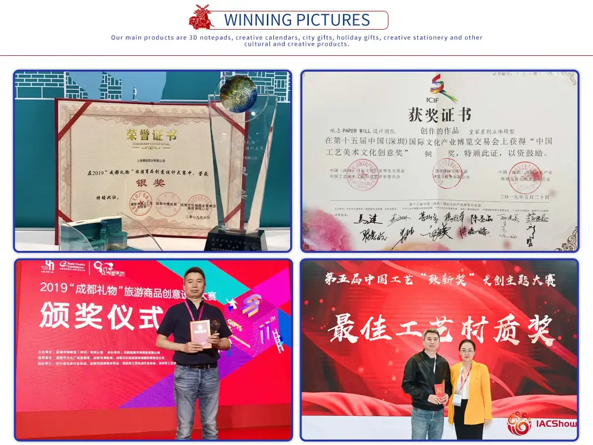 Deqi Paper was founded in Shanghai 2006. The company has Creative Design Center in Shanghai and Chengdu,The Technology R&D Center, 3D model studio, laser engraving, Printing and packaging and injection molding. Our main products are cultural and creative products named 3D Memo Pad, creative calendars, city gifts, holiday gifts, creative stationery, etc.