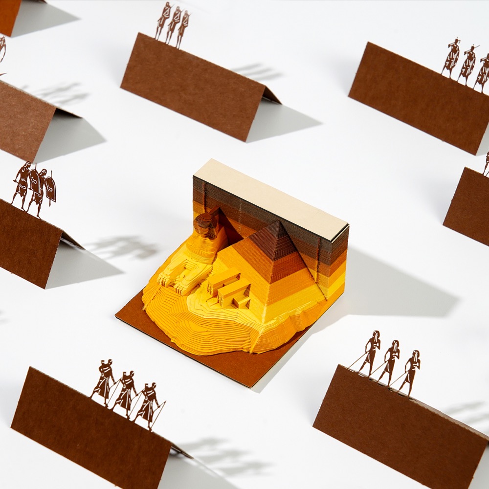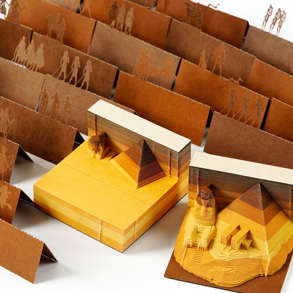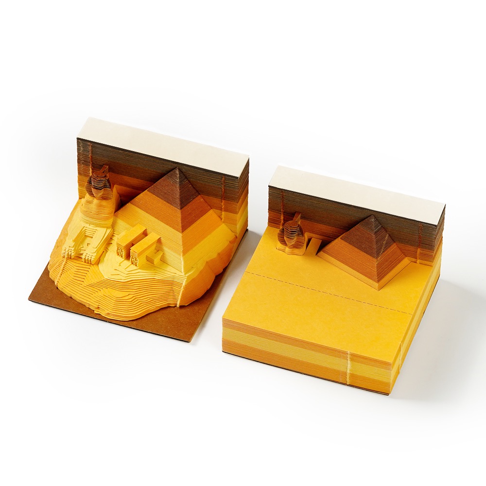 During the 3D memo pad removed layer by layer, the lifelike Pyramid will appear.