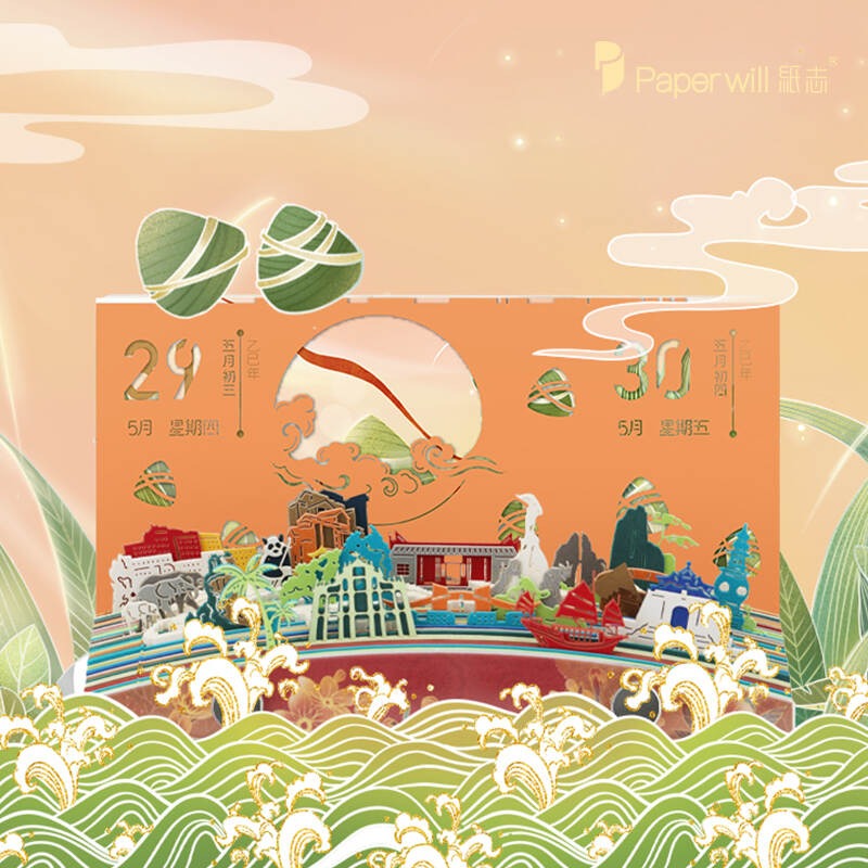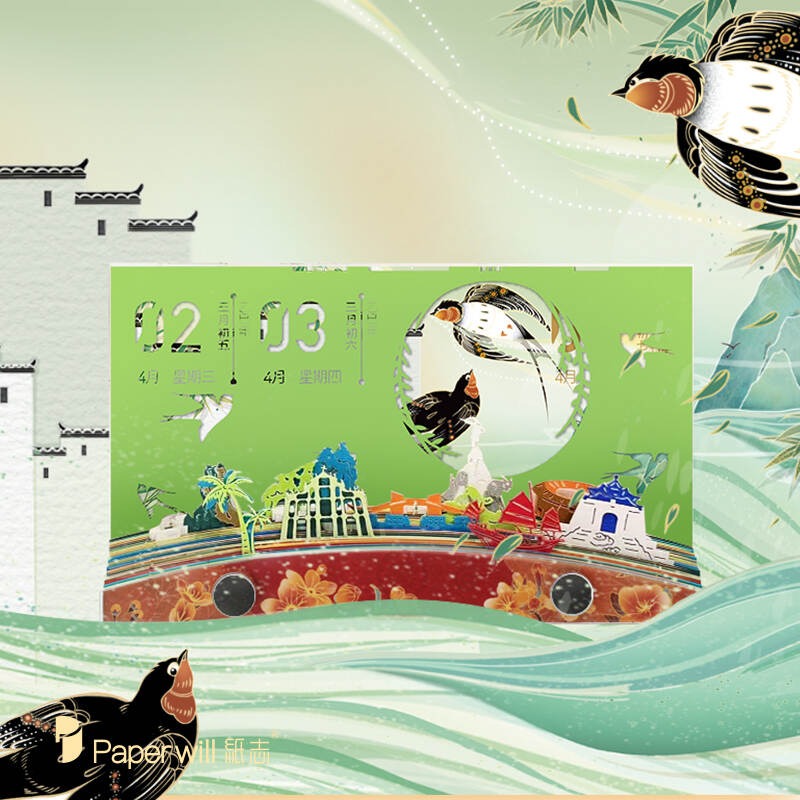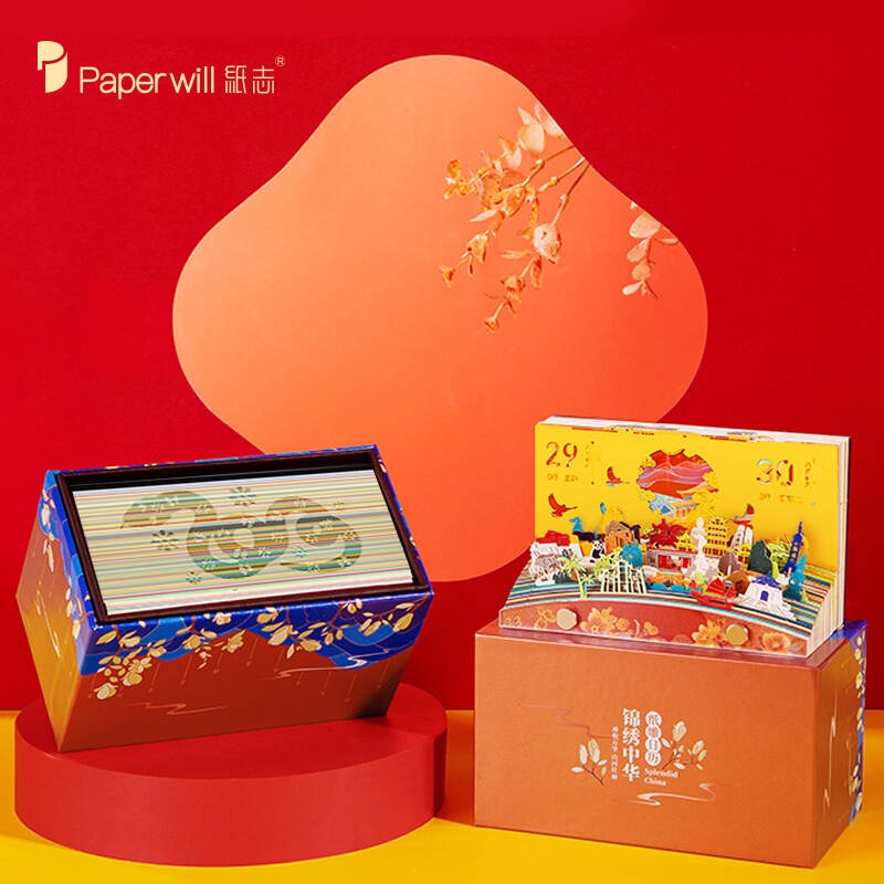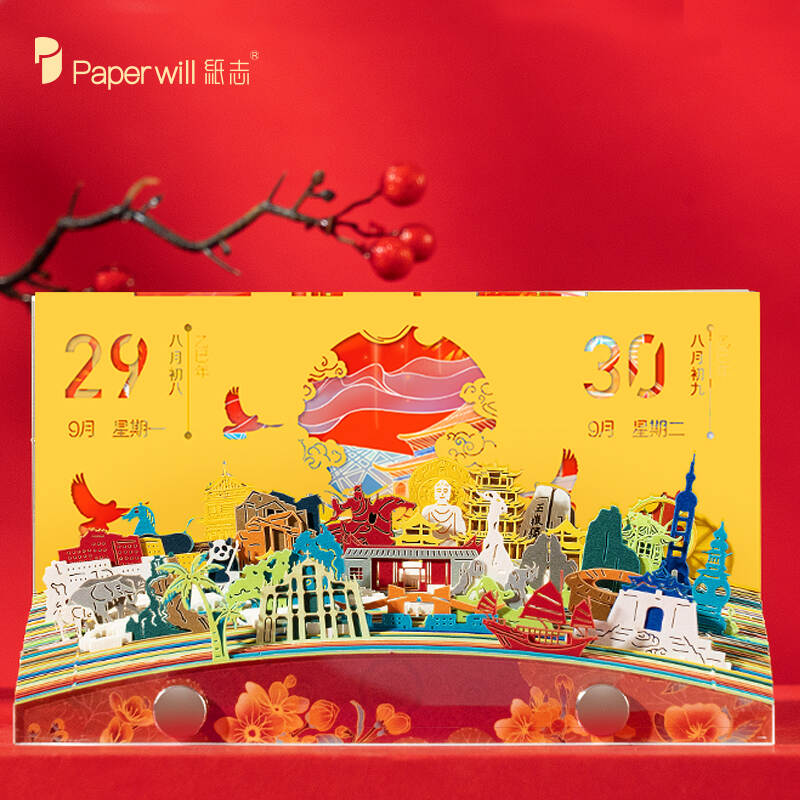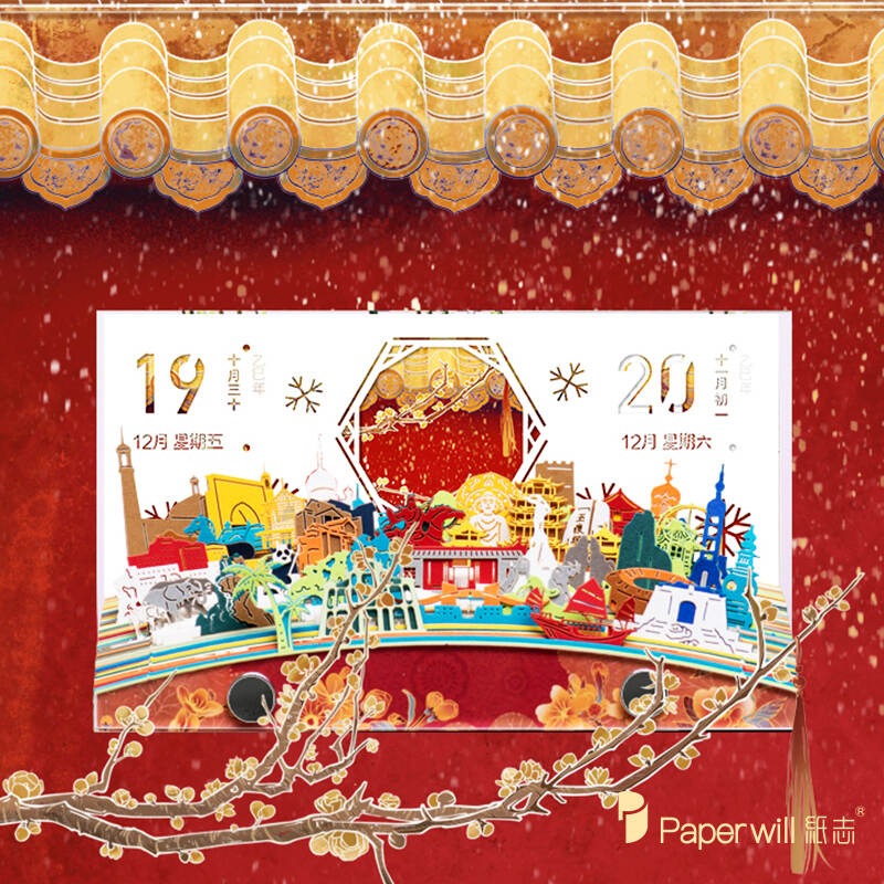 This calendar incorporates the characteristic landscapes and cultural landmarks of 34 provinces, municipalities, and regions in China through the technique of paper carving and hollowing. When you have finished using this calendar, it's as if you have traveled all over China accompanied by it.