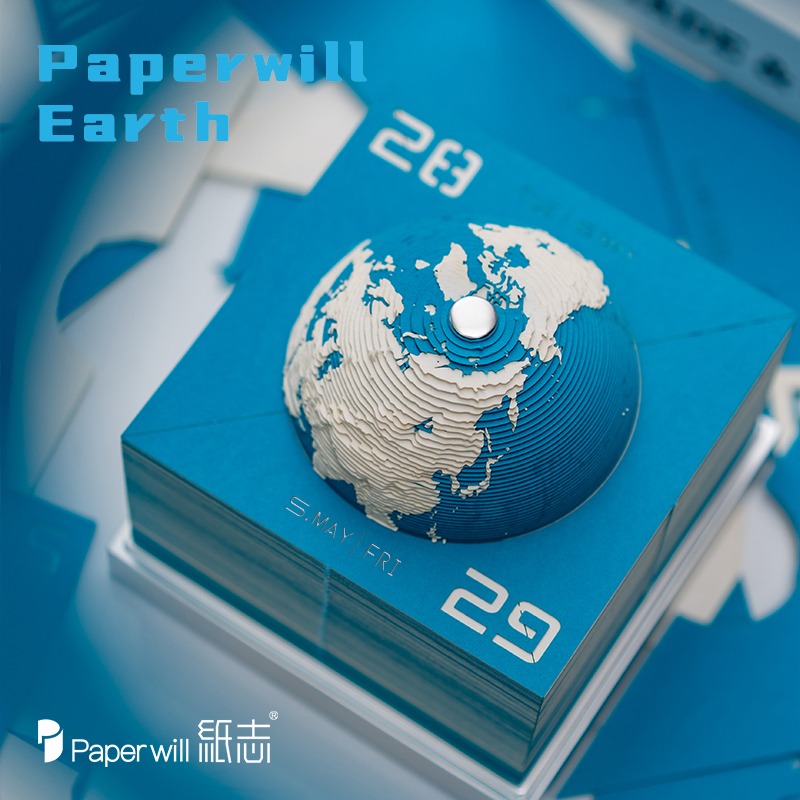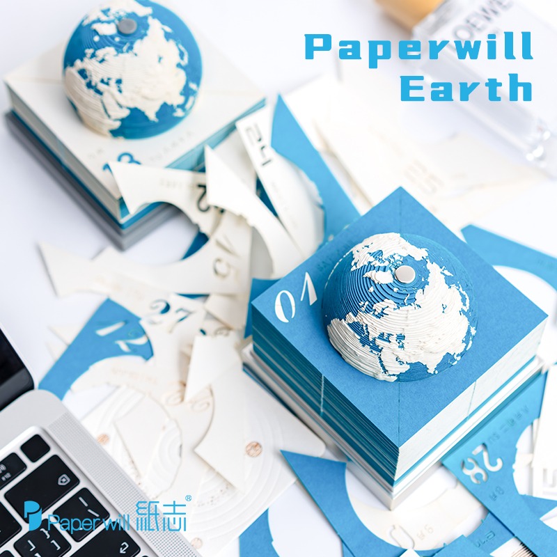 Paperwill Earth Calendar brings you a new world every day. It's a 3D paper sculpture Earth Calendar Model.