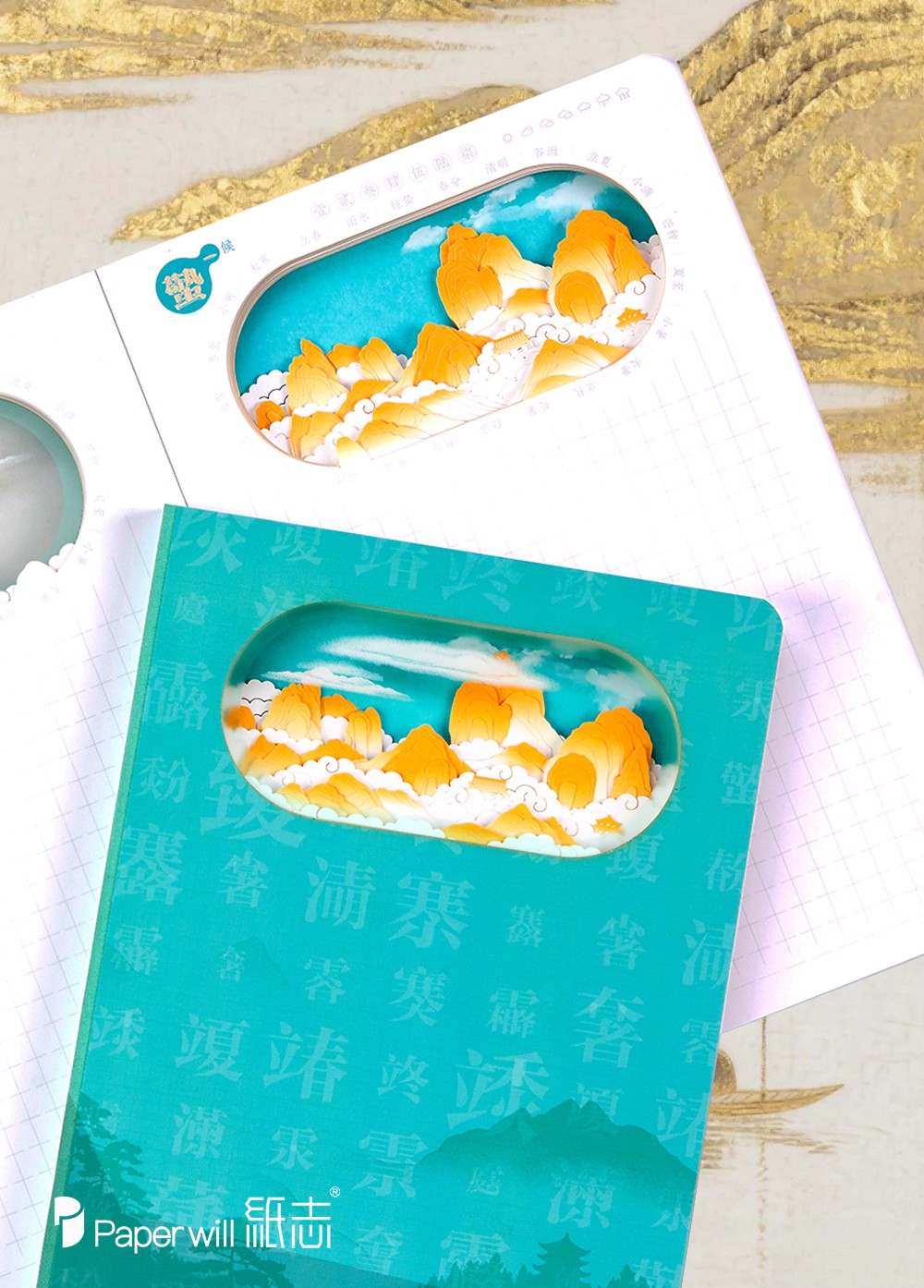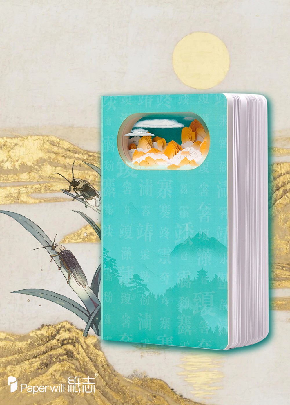 72 Solar Terms Engraved Notebook features 72 Phenologies in solar terms, original illustrations, and Chinese character designs based on seasonal elements, blending traditional culture with paper sculpting craftsmanship. It carries the beauty of nature and meticulous artistry.