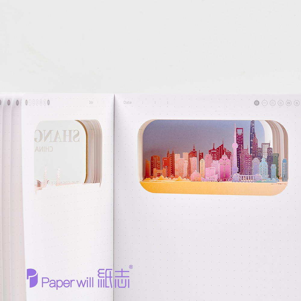 The 3D paper sculpture notebook is a uniquely creative and artistically captivating piece. It seamlessly blends laser engraving with precise printing to showcase unparalleled craftsmanship. Layer upon layer of paper intricately stacked creates a mesmerizing three-dimensional tableau, allowing viewers to appreciate the perfect fusion of art and technology.