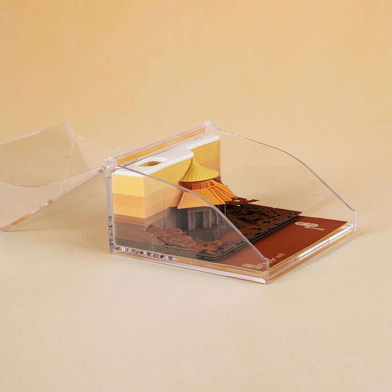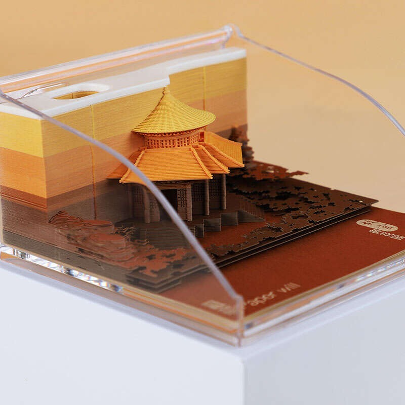 When the Autumn season, the leaves of trees will trun to red or gold color. The whole Imperial Garden become very warm and beautiful place to take rest. During the paper of 3D Imperial Garden 3D memo pad teared layer by layer, the Pavilion will show out from top to bottom with the trees and stones, it's the palce where the Emperor take break. The Imperial Garden,built in 1417,is the oldest garden in Beijing.It occupies an area of 1.3 hectares at the northern end of the central axis of the former Imperial Palace.