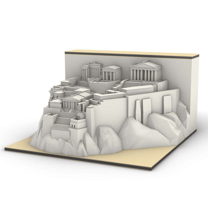 During the 3D memo pad removed layer by layer, the lifelike Acropolis of Athens will appear.
