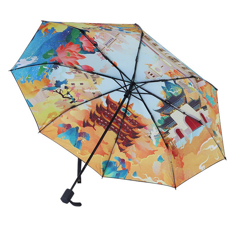 The city design umbrella with the city view printed under the umbrella when opened, let you feel you're walking in the city which you like. The designer take the most famous view of city than to redesign, to make the view picture to be more lively, than make the city view printed on the inner side of Umbrella, when you use the umbrella and look up could see the beautiful view.
